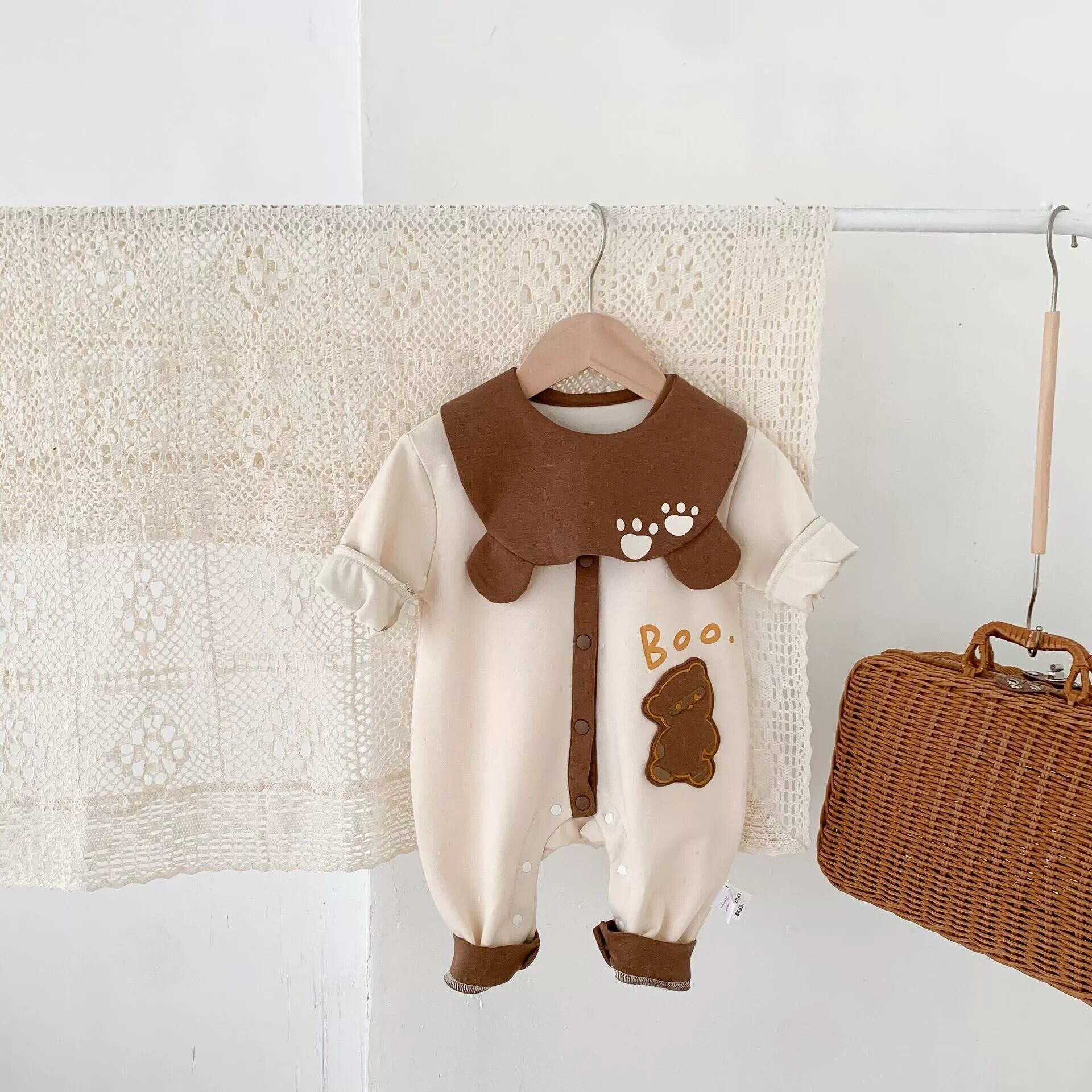 【送料無料】子ども服 動物柄 クマ ベビー服 スタイ付きカバーオール ロンパース