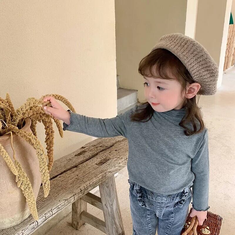 【送料無料】子ども服 ニット ベビー服 最新 韓国 女の子 フリル タートルネック セーター Tシャツ 長袖 1歳 2歳 3歳 4歳 5歳 6歳 流行り かわいい 着回し