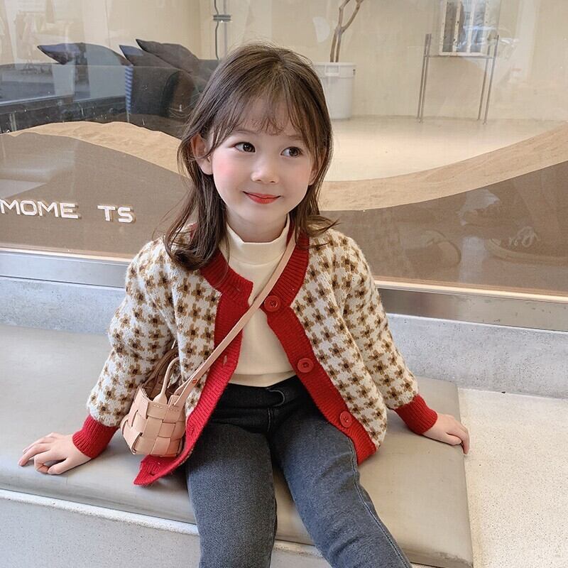 【送料無料】子ども服 セーター 花柄 かわいい 最新 赤色 女の子 ボタン 前開き