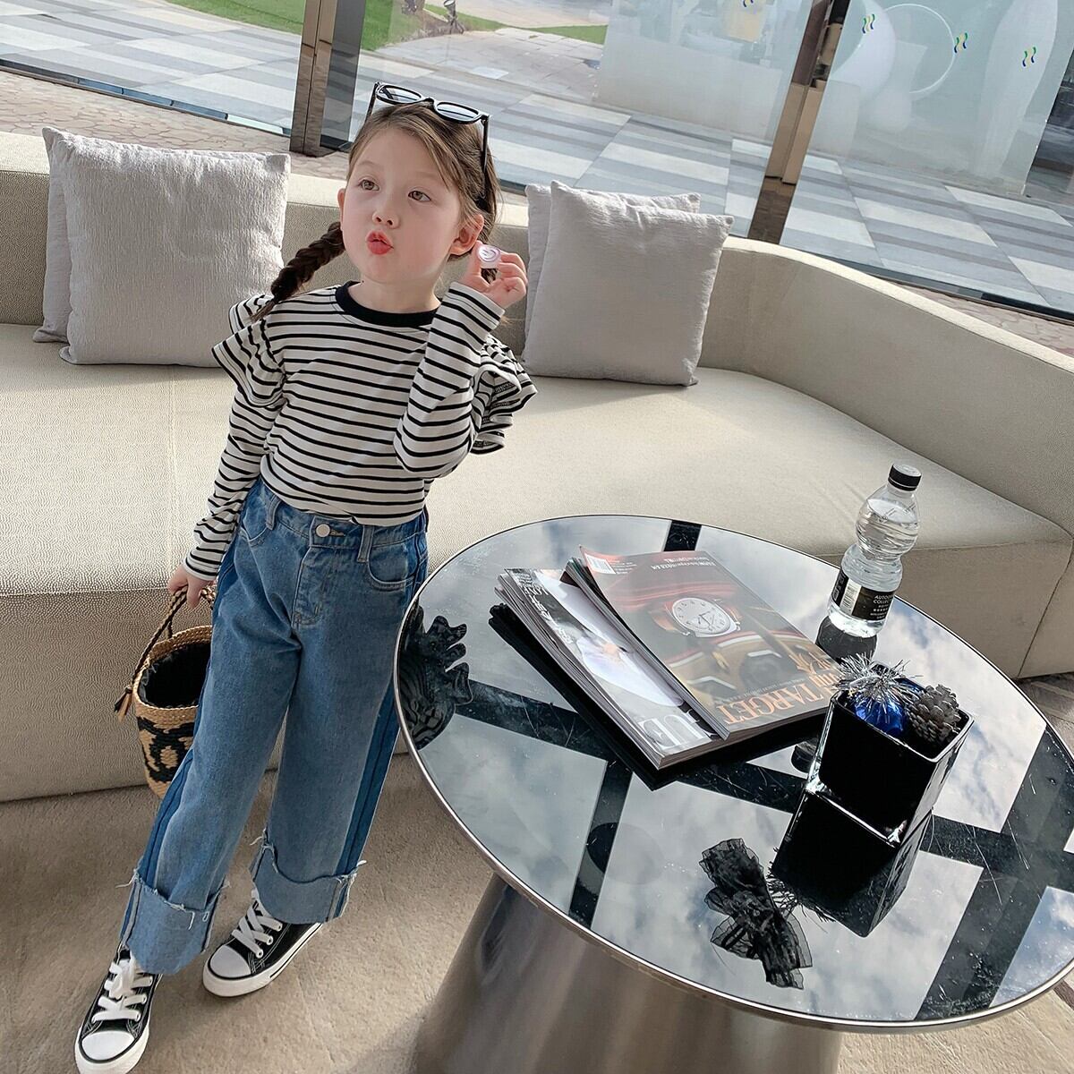 【送料無料】子ども服 Tシャツ ボーダー シンプル 女の子 かわいい フリル 長袖 人気 最新 春 夏 韓国
