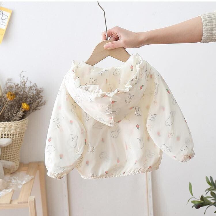 【送料無料】子ども服 ジャケット アウター パーカー 白色 ウサギ ミッフィー かわいい 女の子 最新 韓国 雨 レインコート 雨具 帽子 帽子付き フード